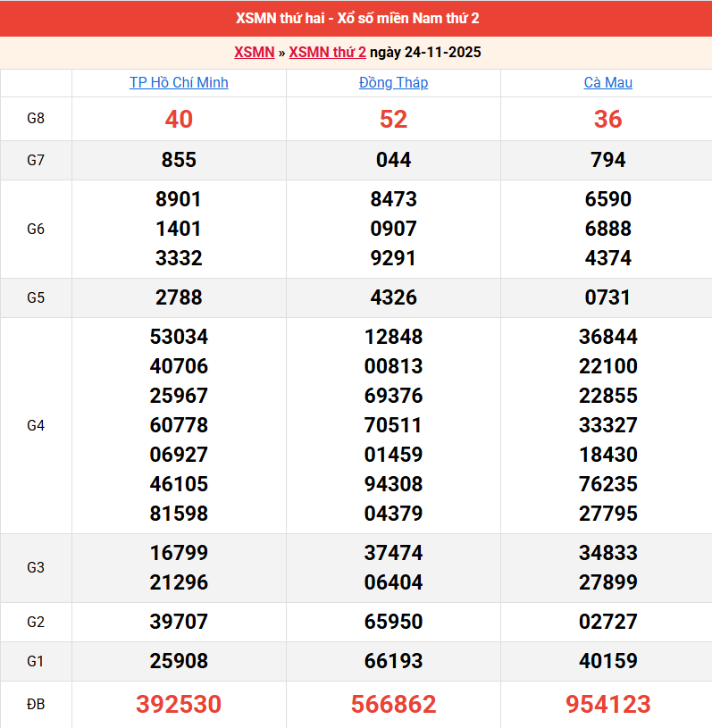 Quay thử kết quả miền Nam ngày 01/12/2025